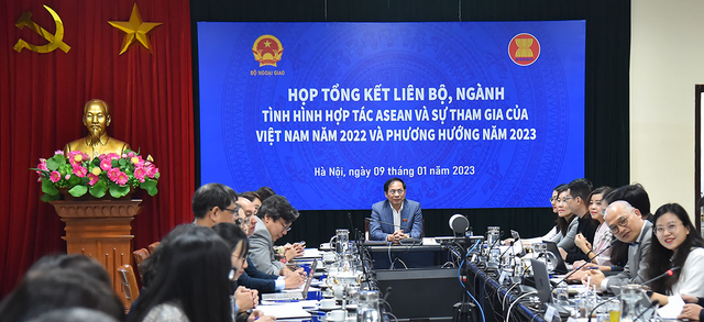 Bộ trưởng nhấn mạnh trong bối cảnh tình hình thế giới và khu vực diễn biến phức tạp với hệ lụy kéo dài, dai dẳng của nhiều vấn đề, các bộ, ngành cần chuẩn bị kỹ kế hoạch cho năm 2023, nhất là cần tìm ra những cơ hội, khai thác tiềm năng mới, vừa tiếp tục đóng góp cho tiến trình hợp tác chung ASEAN, vừa bảo đảm lợi ích quốc gia, dân tộc, phục vụ đắc lực công cuộc xây dựng và phát triển đất nước.