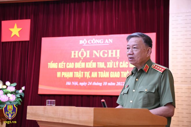 Phát biểu kết luận hội nghị, Bộ trưởng Tô Lấm biểu dương, nêu bật kết quả của Công an các đơn vị, địa phương trong quá trình thực hiện Kế hoạch cao điểm 299, Điện số 76 của Bộ Công an. Nhiều địa phương đã ban hành những kế hoạch ở cấp tỉnh, cấp huyện, chỉ đạo hệ thống chính trị, công chức, người dân chấp hành những quy định về đảm bảo TTATGT. CSGT đã vận động nhiều doanh nghiệp, công ty tự giác tháo, dỡ, cắt thành thùng phương tiện vi phạm. Phối hợp với các trung tâm đăng kiểm để xử lý triệt để đối với những vi phạm này…