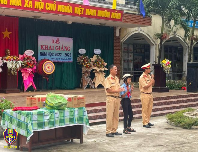 Tại Lễ khai giảng năm học mới, CBCS Phòng CSGT Gia Lai đã tuyên truyền các kiến thức về Luật giao thông đường bộ, quy tắc tham gia giao thông an toàn, giúp các em trang bị kĩ năng mềm cần thiết khi đến trường như: Đi bộ, đi xe đạp, xe xe gắn máy qua đường bảo đảm an toàn; tránh "điểm mù" của xe ô tô tải; phụ huynh không dừng, đỗ xe dưới lòng đường ở khu vực cổng trường gây ách tắc giao thông; các em từ đủ 6 tuổi trở lên bắt buộc phải đội mũ bảo hiểm khi ngồi trên xe máy đến trường....