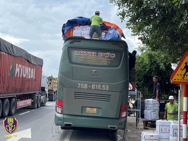 Điển hình, ngày 28/7 tại km 1769 Quốc lộ 1A thuộc địa bàn huyện Hàm Tân, Bình Thuận, tổ công tác của Tổ công tác của Trạm CSGT Hàm Tân thuộc Phòng CSGT Công an tỉnh Bình Thuận đã phát hiện và lập biên bản đối với lái xe về hành vi "Điều khiển xe ô tô ô tô khách biển số 76F- 001.95 chở hàng vượt quá kích thước bao ngoài của xe" và lập biên bản với chủ phương tiện với hành vi " Để phương tiện cho người làm công điều khiển xe thực hiện hành vi vi phạm chở hàng vượt quá kích thước bao ngoài của xe".