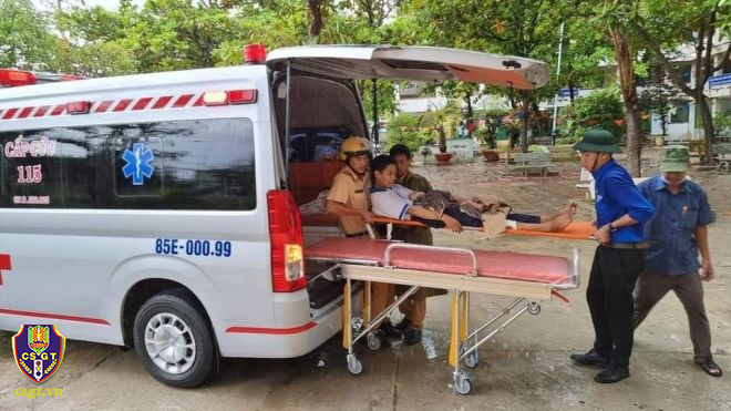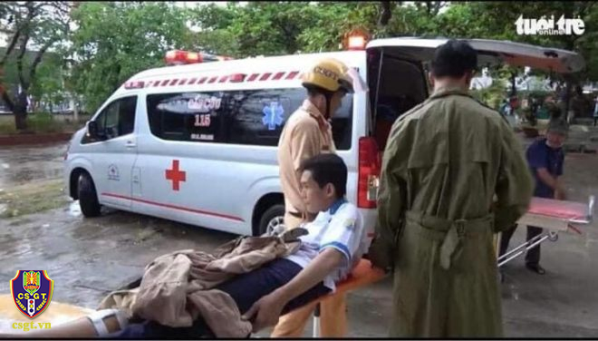 Cán bộ coi thi bị tai nạn được CSGT đưa đến điểm thi kịp giờ làm việc.