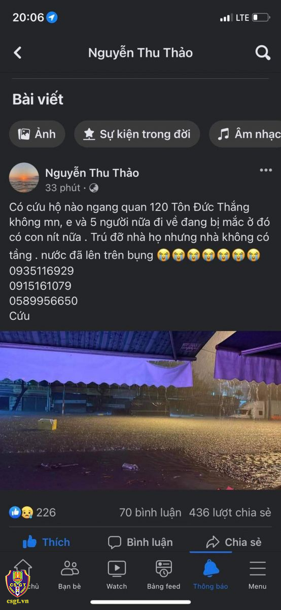 Qua trang Facebook Phòng CSGT Công an TP Đà Nẵng đã tiếp nhận rất nhiều yêu cầu cứu hộ, cứu nạn. Ngay lập tức đơn vị đã triển khai lực lượng, khẩm trương cứu hộ kịp thời, thành công nhiều gia đình bị ngập nước.
