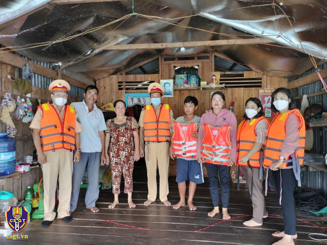 Đội Cảnh sát đường thủy, Phòng Cảnh sát giao thông Công an tỉnh Đắk Nông và Ban An toàn giao thông tỉnh vừa tổ chức tuyên truyền phòng chống đuối nước trong mùa mưa bão cho các hộ gia đình sống trên lòng hồ thủy điện Đồng Nai 3, 4 và tặng áo phao cho trẻ em.