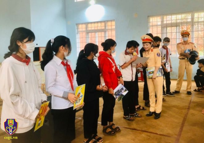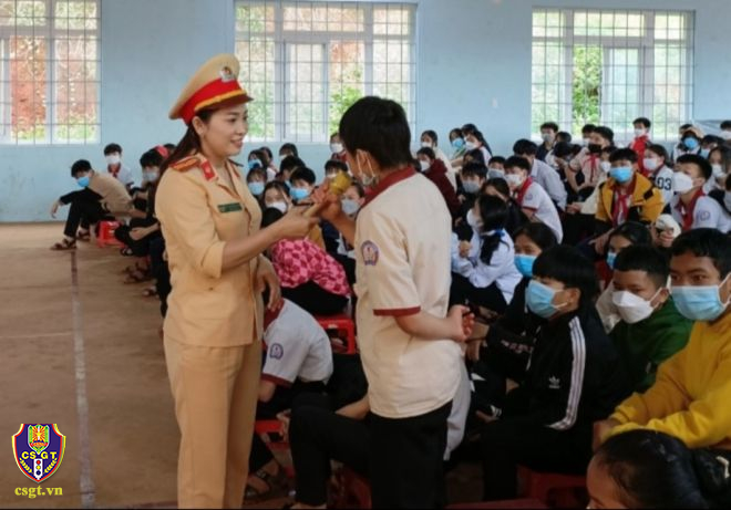 Tại buổi tuyên truyền CBCS Phòng Cảnh sát giao thông Công an tỉnh đã phổ biến các kiến thức pháp luật và luật giao thông đường bộ, công tác bảo vệ an ninh biên giới quốc gia cho gần 450 học sinh và giáo viên của trường THCS Bu P’Răng.