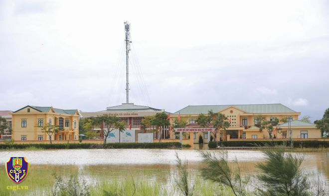 Trụ sở UBND xã Xuân Hồng (Nghi Xuân, Hà Tĩnh) chìm trong biển nước.