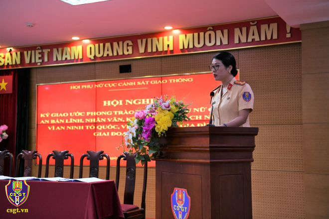 Phát biểu đáp từ tại hội nghị, Thượng tá Đặng Thị Lanh, Chủ tịch Hội Phụ nữ Cục CSGT cho biết, sẽ tiếp thu và lĩnh hội các ý kiến chỉ đạo của các đồng chí lãnh đạo. Đồng chí chủ tịch cho biết thêm, trong phong trào thi đua "Phụ nữ Công an bản lĩnh, nhân văn, kỷ cương, trách nhiệm Vì An ninh Tổ quốc, vì hạnh phúc gia đình" giai đoạn 2022 – 2026, Ban Chấp hành Hội sẽ tiếp tục phát huy những kết quả đạt được, quyết tâm nỗ lực lãnh đạo tổ chức Hội, xây dựng phong trào Hội Phụ nữ Cục CSGT phát triển bền vững; đóng góp tích cực trong phong trào chung của Hội phụ nữ Bộ Công an và nhiệm vụ chính trị của toàn đơn vị.