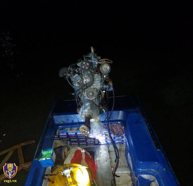 Cụ thể, vào lúc 21 giờ 30 phút, ngày 19/11 trên tuyến sông Tiền, thuộc thủy phận ấp Phú Lợi A, xã Phú Thuận B, huyện Hồng Ngự, Đồng Tháp. Tổ công tác thuộc Trạm Cảnh sát đường thủy Hồng Ngự, Phòng Cảnh sát giao thông phát hiện, kiểm tra phương tiện vỏ lái composit trọng tải khoảng 700kg, lắp máy Hino công suất 20 HP, có biểu hiện nghi vấn vận chuyển hàng lậu. Khi phát hiện tổ công tác, đối tượng đã nhanh chóng điều khiển phương tiện chạy vào bờ bỏ trốn để lại phương tiện. Qua kiểm tra phát hiện trên phương tiện có 2.750 bao thuốc lá ngoại nhập lậu (gồm 1.500 bao JET, 1.250 bao HERO).