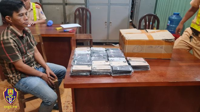 Tiếp đó cùng ngày, lúc 20 giờ 15 phút, Tổ công tác của Đội SGT đường bộ tiến hành tuần tra, kiểm soát tuyến Quốc lộ 22B khi đến khu vực thuộc ấp Tua Hai, xã Đồng Khởi tổ công tác phát hiện một xe ô tô tải biển số: 70H 040.34 lưu thông từ hướng ngã ba Vịnh về hướng xã Bình Minh thành phố Tây Ninh, thấy có nhiều biểu hiện nghi vấn, nên dừng phương tiện để kiểm tra. Qua kiểm tra người điều khiển phương tiện tên: Ngô.V.T, 46 tuổi, trú tại thị xã Hoà Thành, tỉnh Tây Ninh. Phía sau thùng xe chở các thùng hàng được ngụy trang bên ngoài bằng một số thùng xốp trắng, khi kiểm tra bên trong thì phát hiện có 07 kiện hàng lớn được quấn lại bằng keo, thùng giấy.