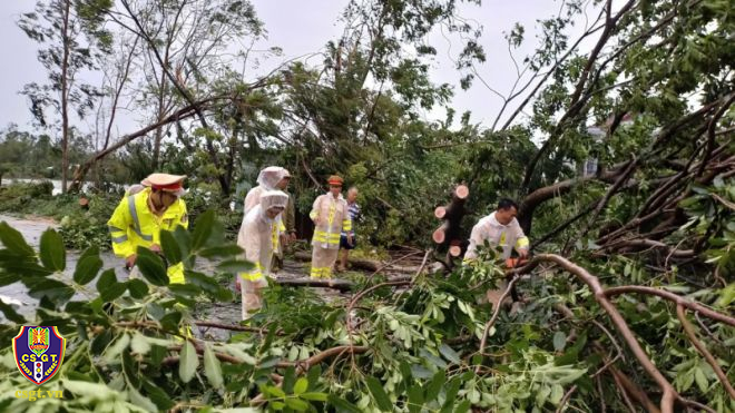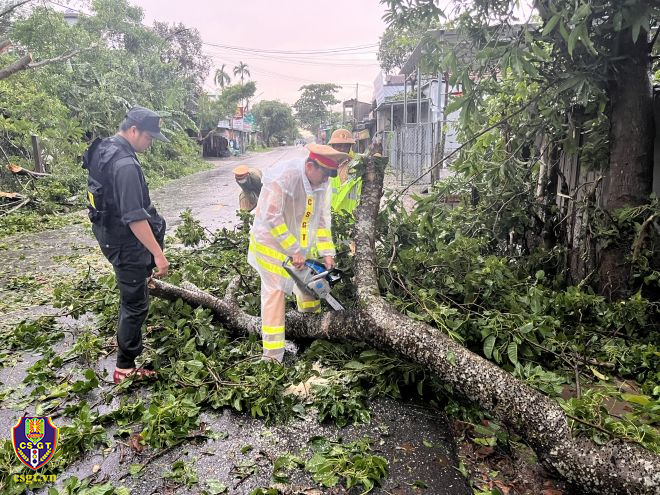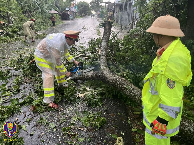 Một số hình ảnh lực lượng CSGT khắc phục hậu quả sau bão số 4 tại một số địa phương: