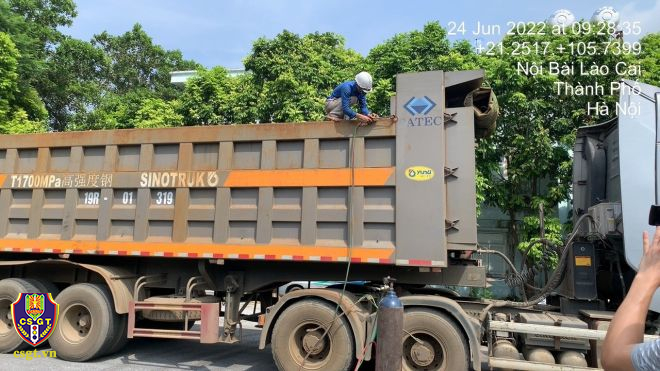 Vụ việc được phát hiện vào hơn 21h đêm ngày 23/6, tại Km 6 cao tốc Nội Bài – Lào Cai, tổ công tác Đội 1 đã yêu cầu dừng xe, kiểm tra tải trọng ô tô đầu kéo mang biển kiểm soát 19H- 013.XX, kéo theo rơ- móoc mang biển số 19R- 013.XX do lái xe Nguyễn Việt C. điều khiển.