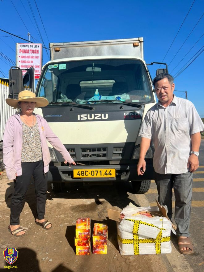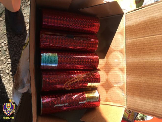 Qua kiểm tra phương tiện phát hiện trên xe có 16 hộp pháo không có giấy tờ chứng minh nguồn gốc.
