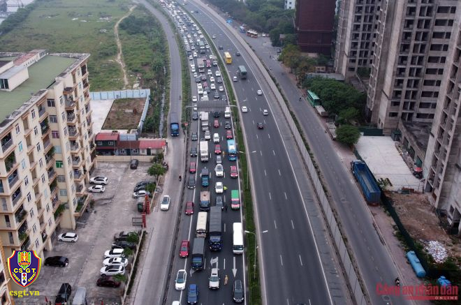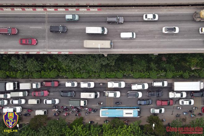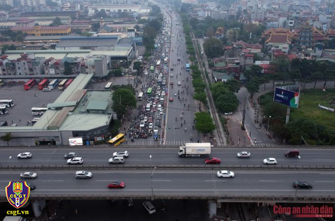 Từ sớm, các tổ công tác của Đội TTKS đường bộ cao tốc số 3, Phòng Hướng dẫn TTKS giao thông đường bộ, Cục CSGT cùng với Đội CSGT số 14 Phòng CSGT Hà Nội đã bố trí lực lượng chốt trực phân luồng điều tiết.