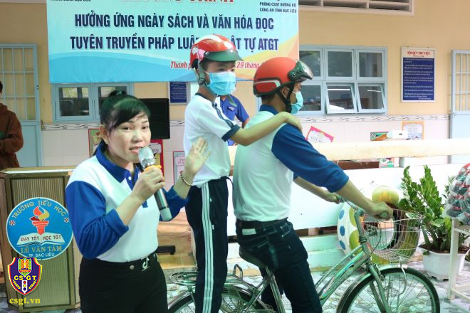 Nhân kỷ niệm 47 năm Ngày giải phóng miền Nam, thống nhất đất nước (30/4/1975 – 30/4/2022) và 136 năm Ngày Quốc tế lao động (01/5/1886 – 01/5/2022), từ ngày 28 đến 29/4/2022 Đội Tuyên truyền, Điều tra giải quyết tai nạn và Xử lý vi phạm giao thông đường bộ, Phòng CSGT đường bộ Công an tỉnh Bạc Liêu đã phối hợp cùng Head Honda thuộc Công ty Thành Mỹ Bạc Liêu tổ chức hoạt động tuyên truyền, phổ biến giáo dục pháp luật về trật tự ATGT, hướng dẫn cách đội mũ bảo hiểm và ngồi xe an toàn cho các em học sinh tại Trường Tiểu học Đinh Bộ Lĩnh (xã Hiệp Thành) và Trường Tiểu học Lê Văn Tám (Phường 1) trên địa bàn thành phố Bạc Liêu.