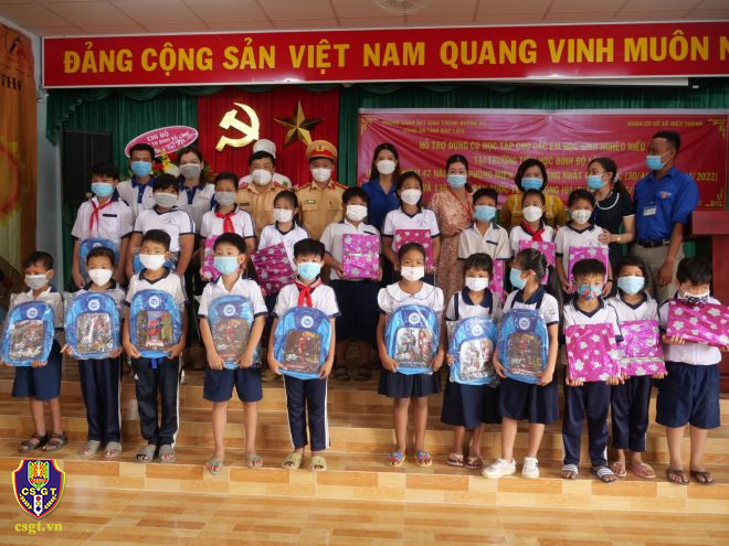 Song hành với công tác tuyên truyền, nhân dịp này đoàn đã tiến hành trao tặng mũ bảo hiểm cùng cặp sách và nhiều đồ dùng học tập tại các điểm trường nói trên, nhằm động viên tinh thần, hỗ trợ, tiếp sức các em vượt qua khó khăn trước mắt cùng nhau phấn đấu, vươn lên trong học tập…