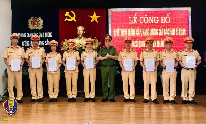 Sáng ngày 06/6, Phòng CSGT đường bộ - đường sắt đã long trọng tổ chức lễ công bố các Quyết định của Giám đốc Công an thành phố về thăng cấp bậc hàm, nâng bậc lương cho 72 CBCS trong đơn vị. Đến dự và chỉ đạo buổi lễ có đồng chí Đại tá Bùi Trung Thành, Uỷ viên Ban thường vụ Đảng uỷ, Phó Giám đốc Công an thành phố; tham dự Lễ công bố quyết định còn có đồng chí đại diện Lãnh đạo Phòng Tổ chức cán bộ; các đồng chí trong Thường vụ Đảng ủy, Lãnh đạo Phòng CSGT đường bộ - đường sắt; tập thể chỉ huy các Đội, Trạm cùng toàn thể CBCS được nâng lương, thăng cấp bậc hàm năm 2022.