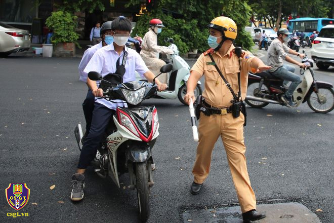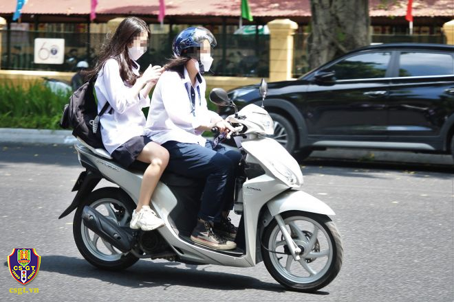 Vừa rời khỏi cổng trường, nam học sinh lớp 11 trường THPT T P đã bị tổ công tác yêu cầu dừng xe với lỗi điều khiển xe máy chở theo người ngồi sau không đội mũ bảo hiểm. Khi bị lực lượng CSGT thông báo lỗi vi phạm trên, nam học sinh cho nói "bố mẹ giao xe cho cháu chỉ dặn đi xe phải đội mũ bảo hiểm còn hôm nay đèo theo bạn thì không biết cả cùng phải đội mũ và đoạn đường từ trường về nhà gần nên không để ý", trước sự "ngô nghê" của nam học sinh, CSGT đã phải nhắc nhở và hướng dẫn, tuyên truyền các quy định cơ bản về luật giao thông đường bộ cho em học sinh này.