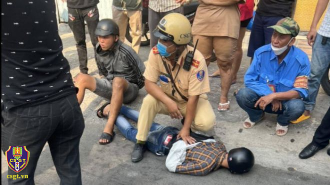 Ngày 07/3, tại giao lộ 3/2 + Sư Vạn Hạnh, phường 10, quận 10, thành phố Hồ Chí Minh, tổ TTKS do Đại úy Nguyễn Trần Chu Luân và Đại úy Nguyễn Tấn Tài thuộc Phòng CSGT TP. Hồ Chí Minh đang làm nhiệm vụ phát hiện 02 đối tượng cướp giật đang bỏ chạy và bị người dân truy đuổi đã nhanh chóng tiếp cận khống chế và bắt giữ đối tượng. Qua khai thác đối tượng tự khai họ và tên: Bùi Xuân Lộc, sinh năm 2005; trú tại 67/32 Bờ Bao Tân Thắng, Sơn Kỳ, Tân Phú cùng đối tượng tên Thắng Anh điều khiển xe mô tô BKS: 59D2-91029 để cướp giật tài sản. Tổ TTKS đã lập biên bản bàn giao người, tang vật, phương tiện cho Công an phường 10 để xử lý theo quy định.