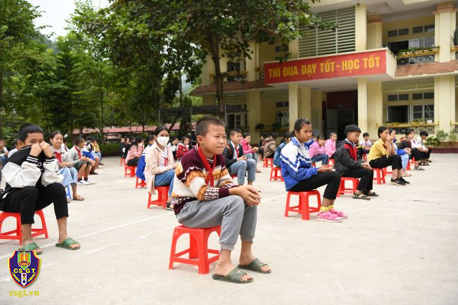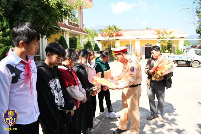 Cũng trong khuôn khổ chương trình, Đoàn công tác đã trao tặng 150 mũ bảo hiểm, 2.000 huy hiệu doremon, 43 suất quà trao tặng cho học sinh hoàn cảnh khó khăn có thành tích xuất sắc trong học tập tại trường học và tổ chức trao tặng 200 áo phao, đồ dùng học tập cho trẻ em, bà con vùng gần sông nước.