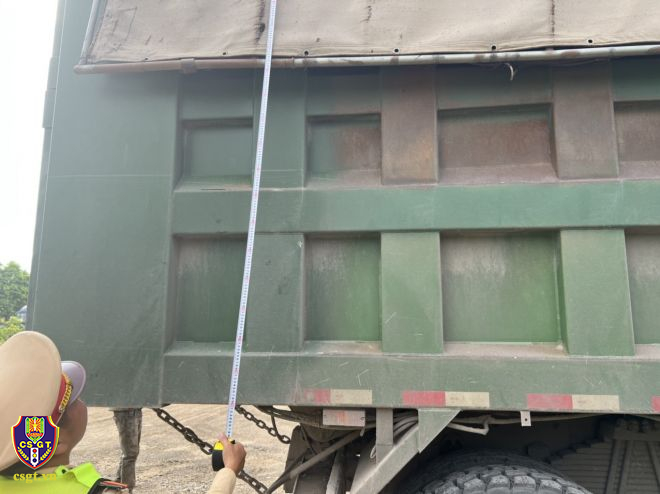 Cùng ngày, lúc 11h00 tại km56 cao tốc Hạ Long – Vân Đồn, tổ CSGT thuộc Đội TTKSGT đường bộ cao tốc số 2 phát hiện lái xe Mai Thanh Hải (trú tại Đông Triều, Quảng Ninh) điều khiển xe ô tô biển số: 14C-004.1x vi phạm điều khiển xe có kích thước thành thùng xe không đúng với thông số kỹ thuật được ghi trong Giấy chứng nhận kiểm định ATKT và BVMT của xe.